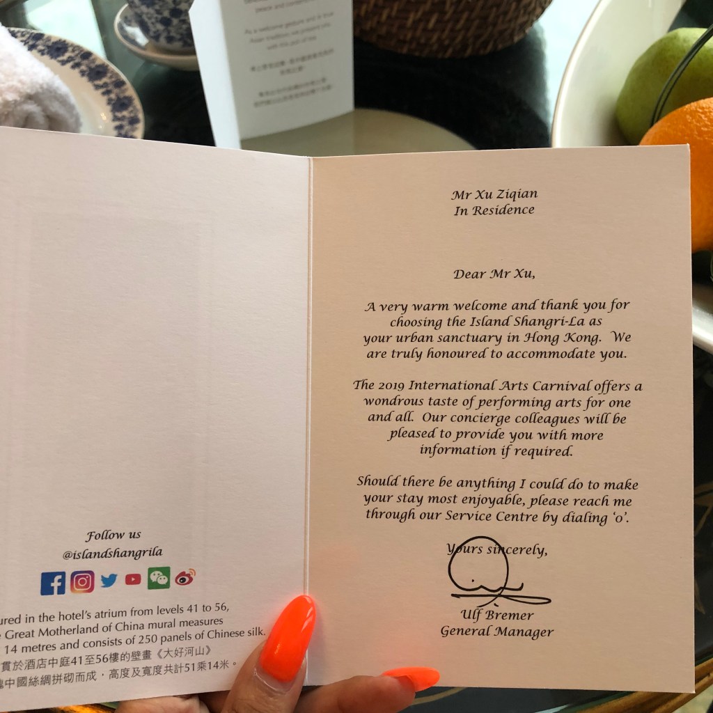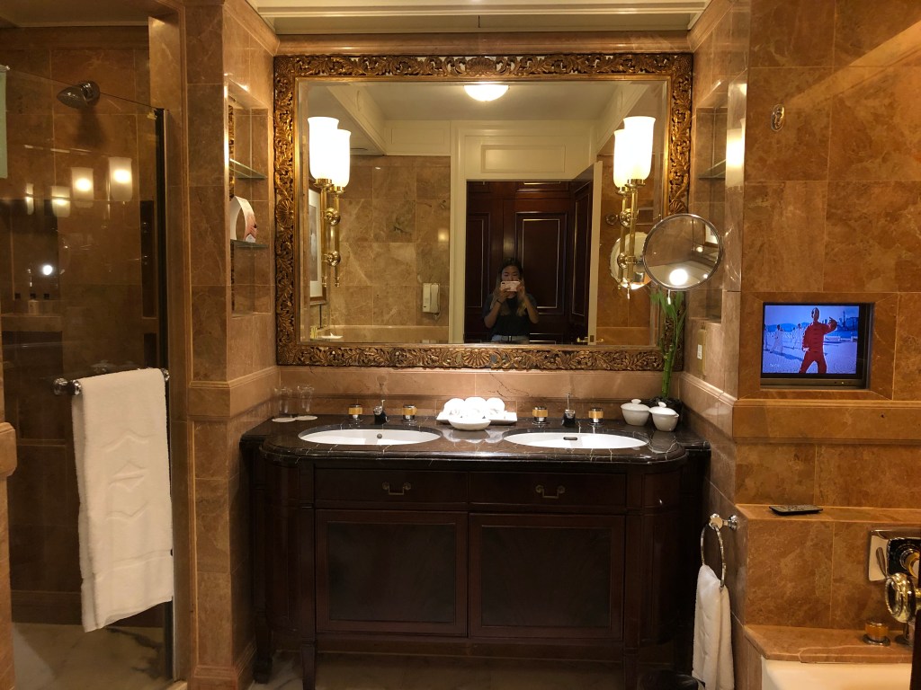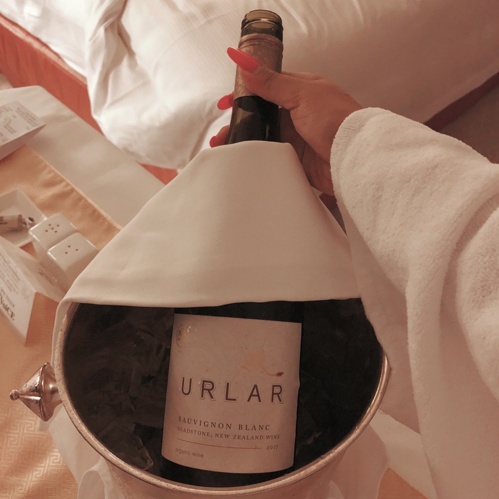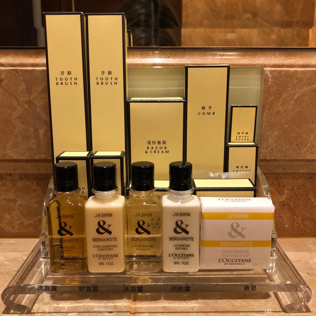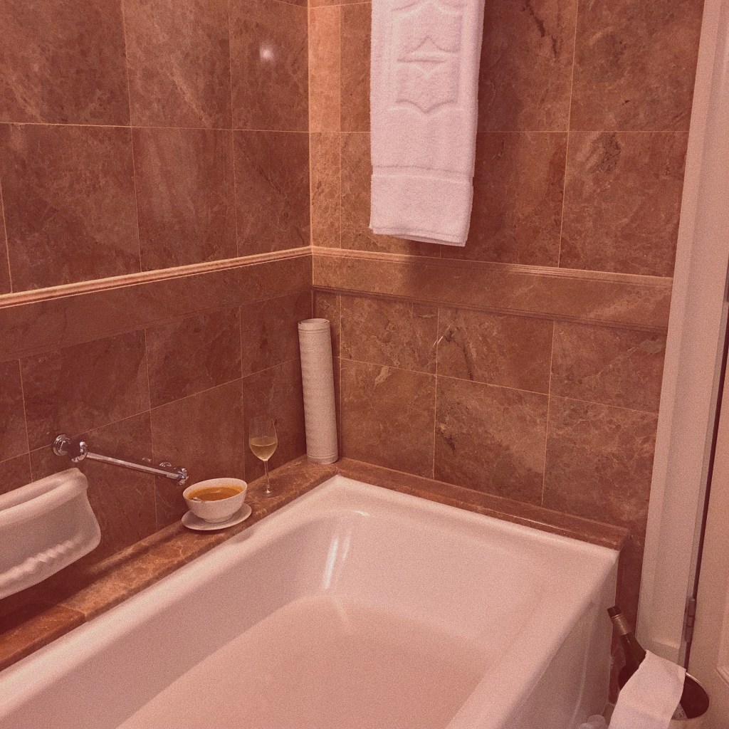 Hot tub and a glass of Sauvignon Blanc, plus a bowl of lobster bisque feels like an ideal way to end my single night stay in Hong Kong. Both the wine and bisque are free thanks to Amex’s fine hotel collection program; I got $100 food and beverage credit to use during my quick 24 hours stay.